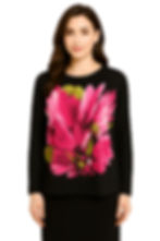Modest Top Black with Bold Pink Floral Print Plus Size